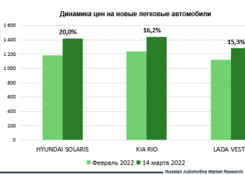 Агентство Russian Automotive Market Research проанализировало рекомендованные розничные цены на легковые автомобили на 14 марта 2022 г. по сравнению с февралем 2022[...]