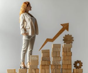 Morning Math Motivation: Wooden Number Blocks Pyramid with Coffee on Orange Background